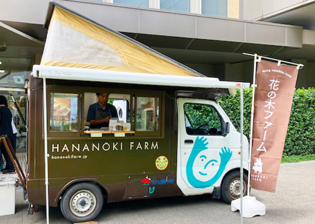 障害のある人たちが、低農薬の安全、安心な農畜産物を生産している大隅半島南大隅町の花の木農場。この農場からの新鮮な野菜や果物を原料にしたジェラートをお持ちしました。「お客様に喜んでもらえる商品を作りたい」という彼らの思いがこもったものです。